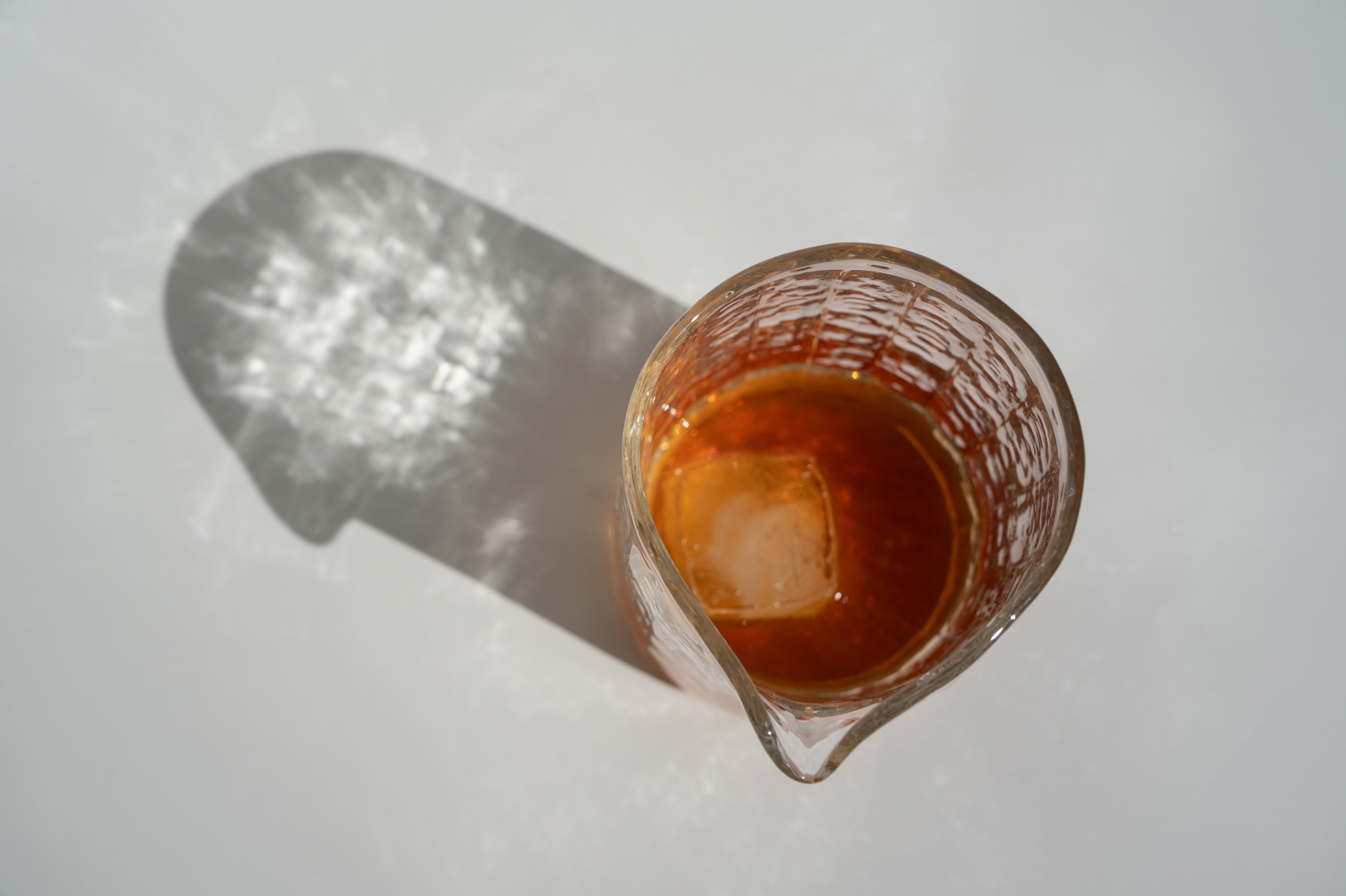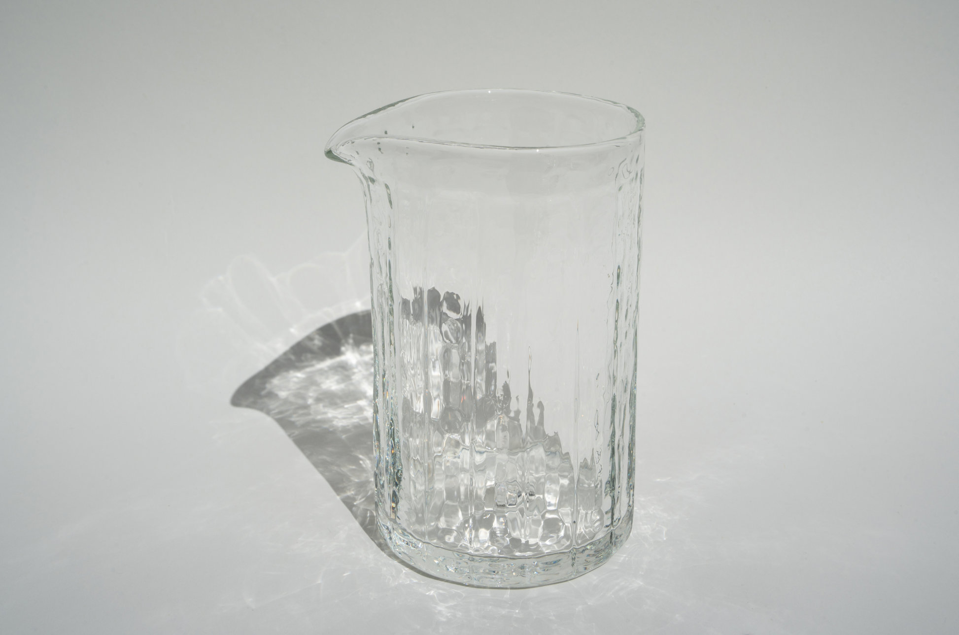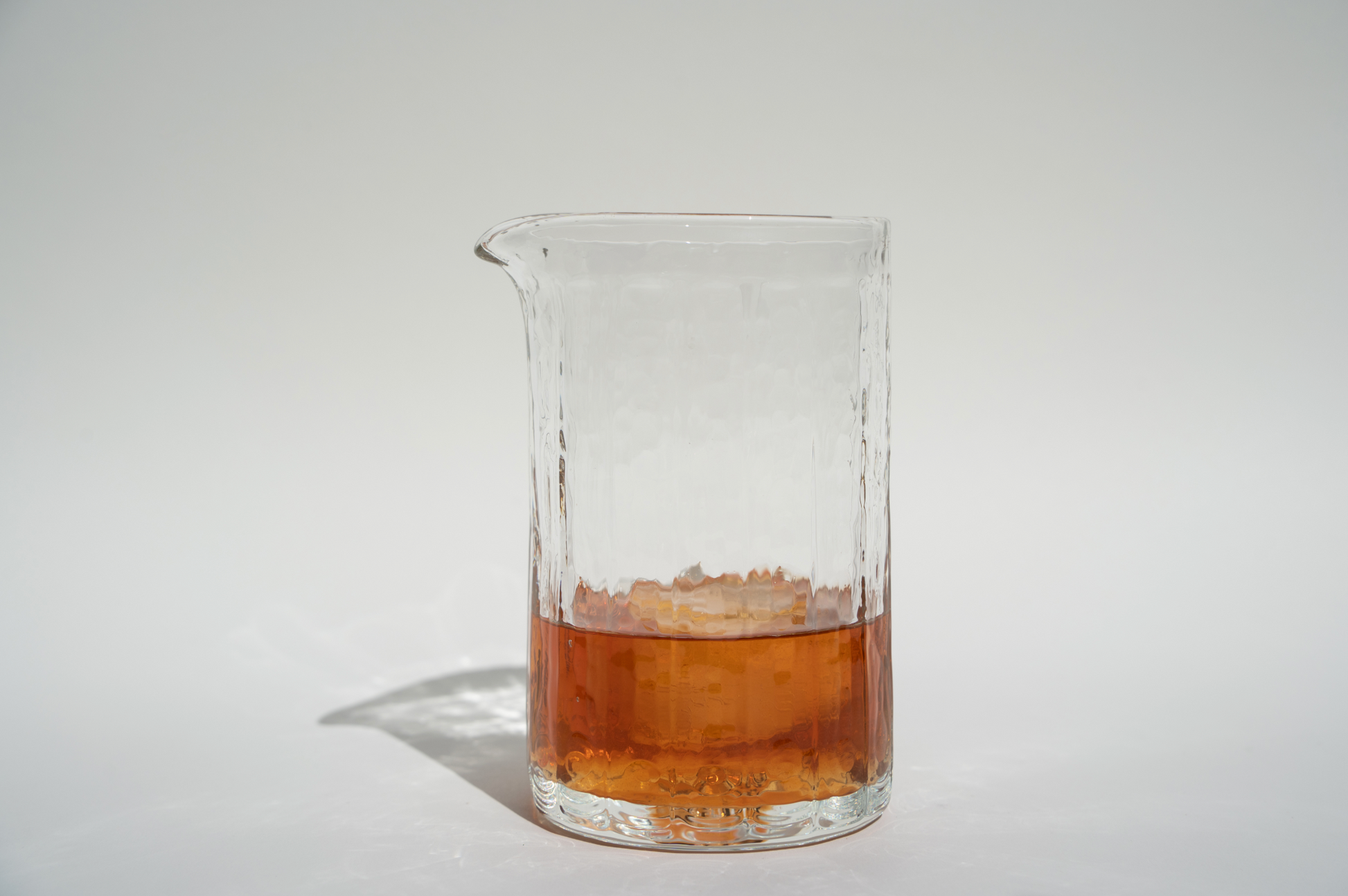 Our mixer is designed for creating cocktails, or as a small pitcher. It is sized for a Cooper cocktail strainer as well. All of our glass is made by hand. We developed a technique that yields a slightly different form each time, using a mold and form-making process that we developed with our glassblower.