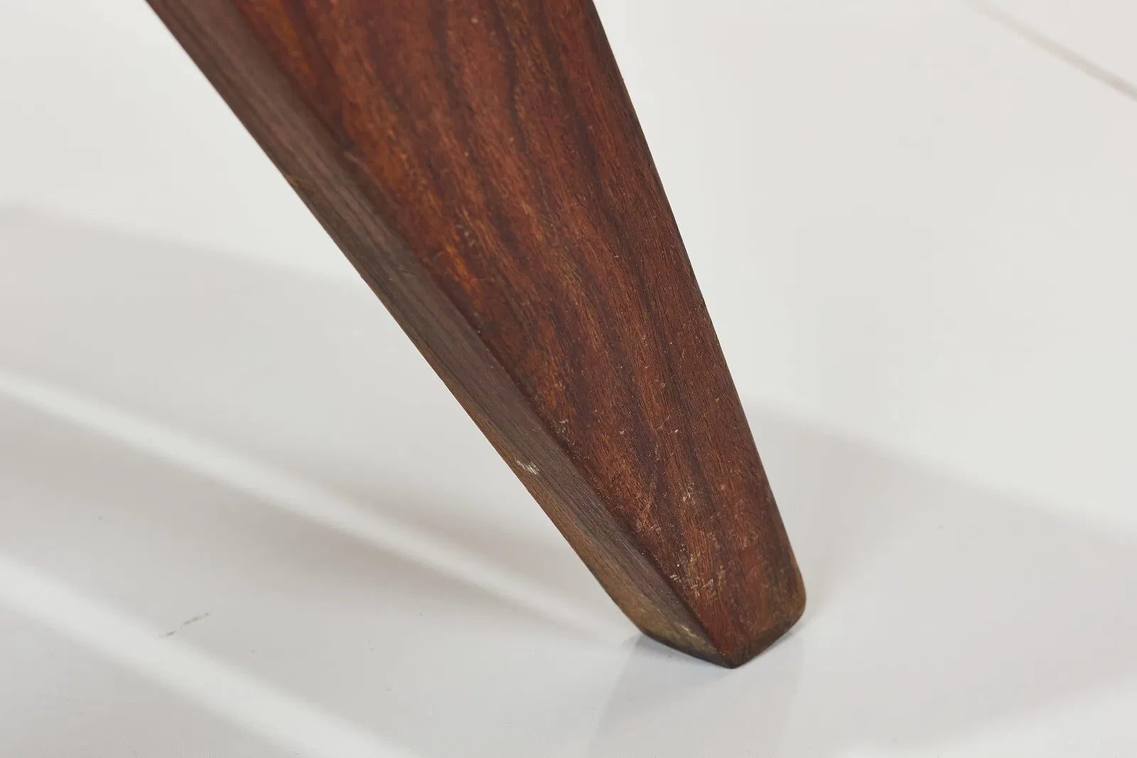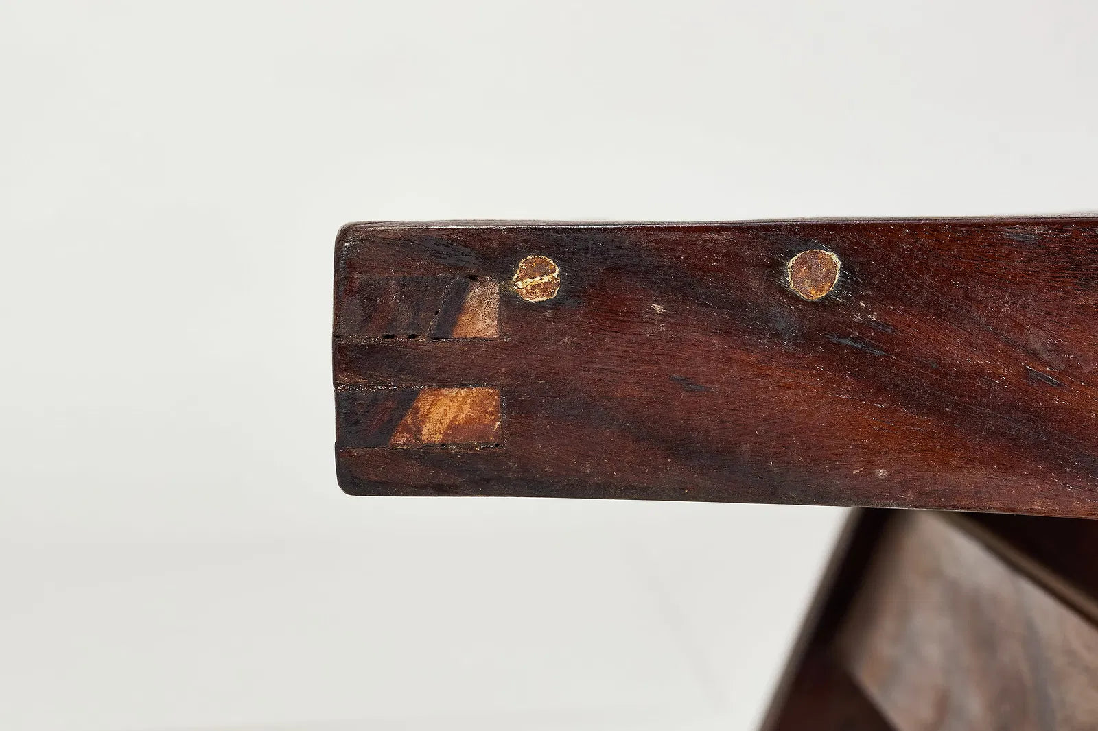 Slatted dining chairs. Each with painted inscription to back seat apron. From Chandigarh, ca. 1953.